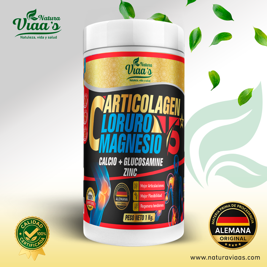 El Carticolagen 5 en 1 combina cartílago de tiburón, colágeno hidrolizado, cloruro de magnesio, calcio, glucosamina y zinc, ofreciendo un suplemento premium para el cuidado de las articulaciones, huesos, piel, cabello y uñas. Elaborado con materia prima de procedencia alemana y procesado bajo estrictos controles de calidad, ayuda a mantener la movilidad, prevenir el desgaste articular y mejorar la salud ósea.